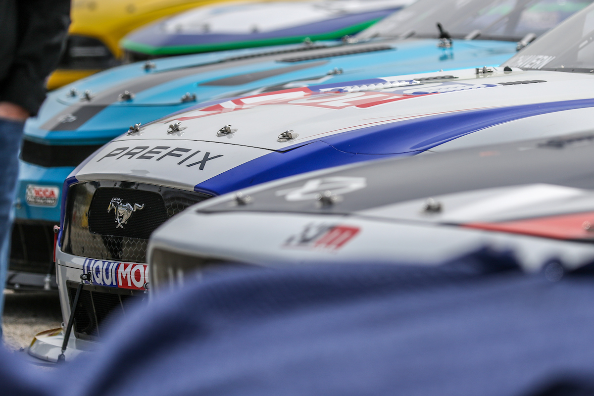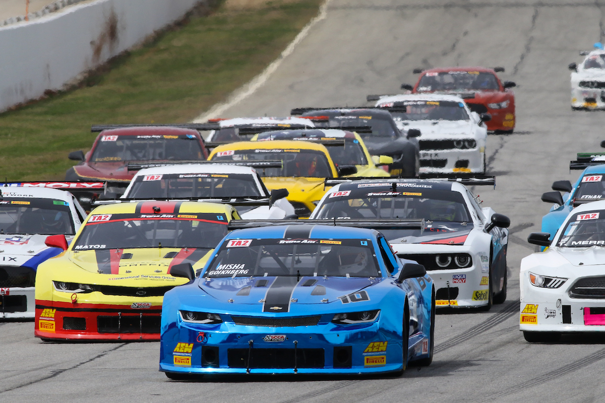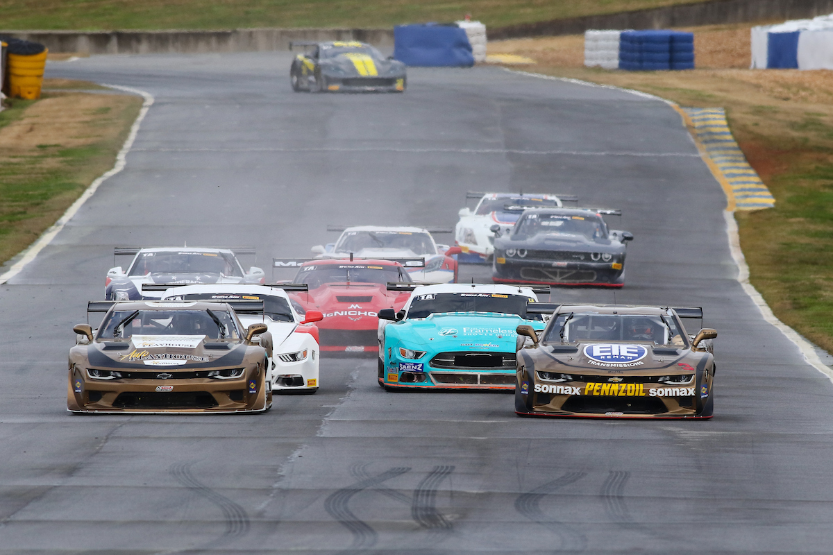 A TA2 race start: Four, sometimes Five cars wide. Fender to fender, door to door. This is some of the best wheel to wheel racing on the planet.