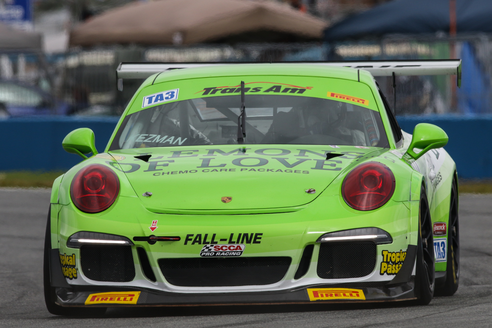 In TA3, Tim Kezman, in the No. 14 Fall-Line Motorsports Porsche 991 GT3 Cup, was awarded his eighth career class victory after the No. 27 Vintage Four Twenty-Three Dodge Viper of race leader Jason Daskalos was penalized 40 seconds for manipulating the restart.