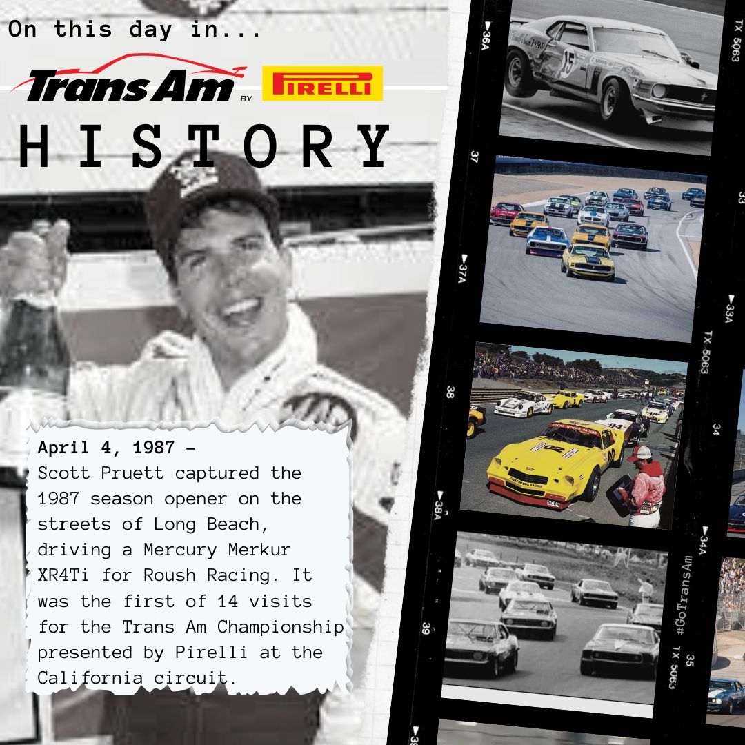 Scott Pruett captured the 1987 season opener on the streets of Long Beach, driving a Mercury Merkur XR4Ti for Roush Racing. It was the first of 14 visits for the Trans Am Championship presented by Pirelli at the California circuit.