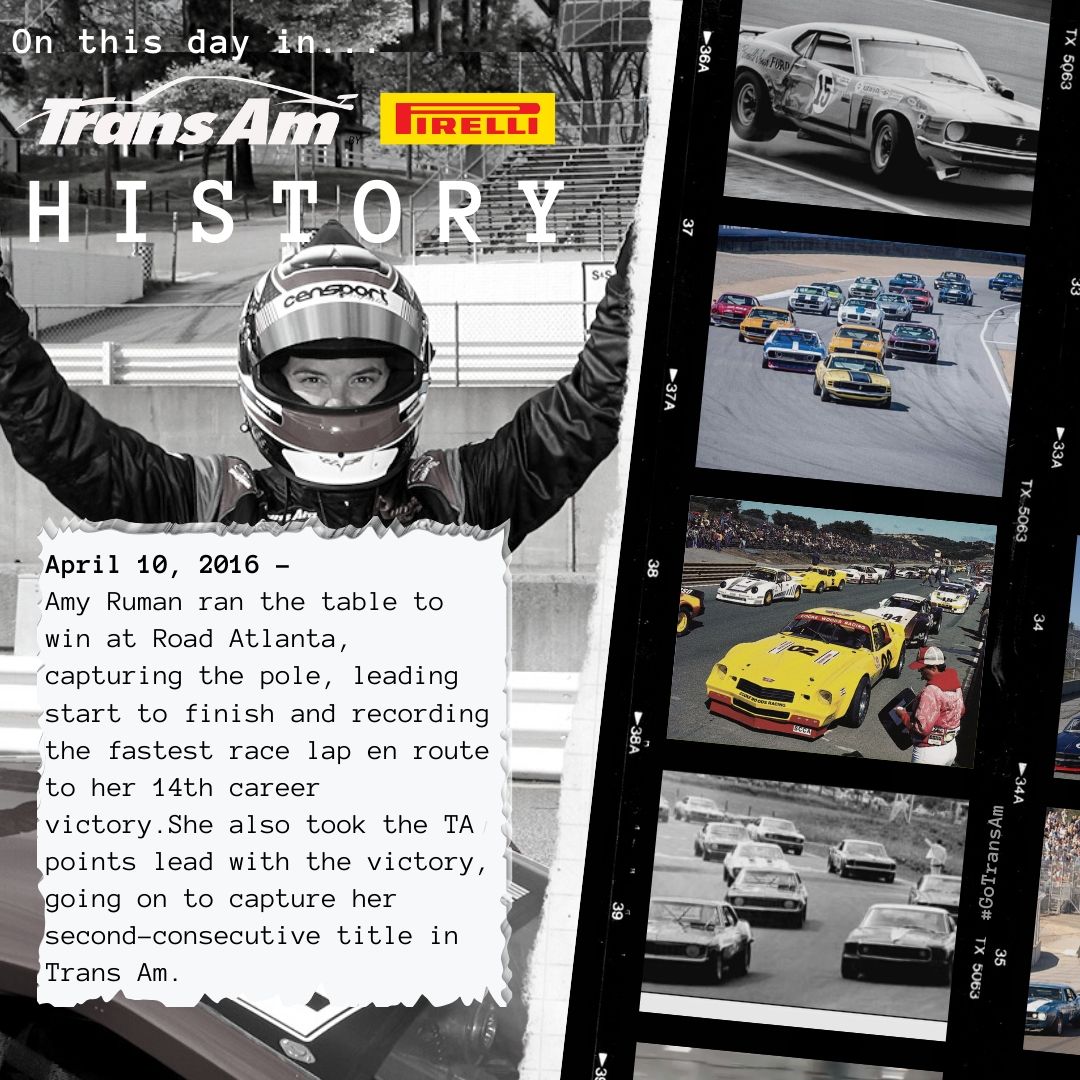 It was the third Road Atlanta triumph for Ruman, who became the first woman to win in Trans Am history at the circuit in 2011.