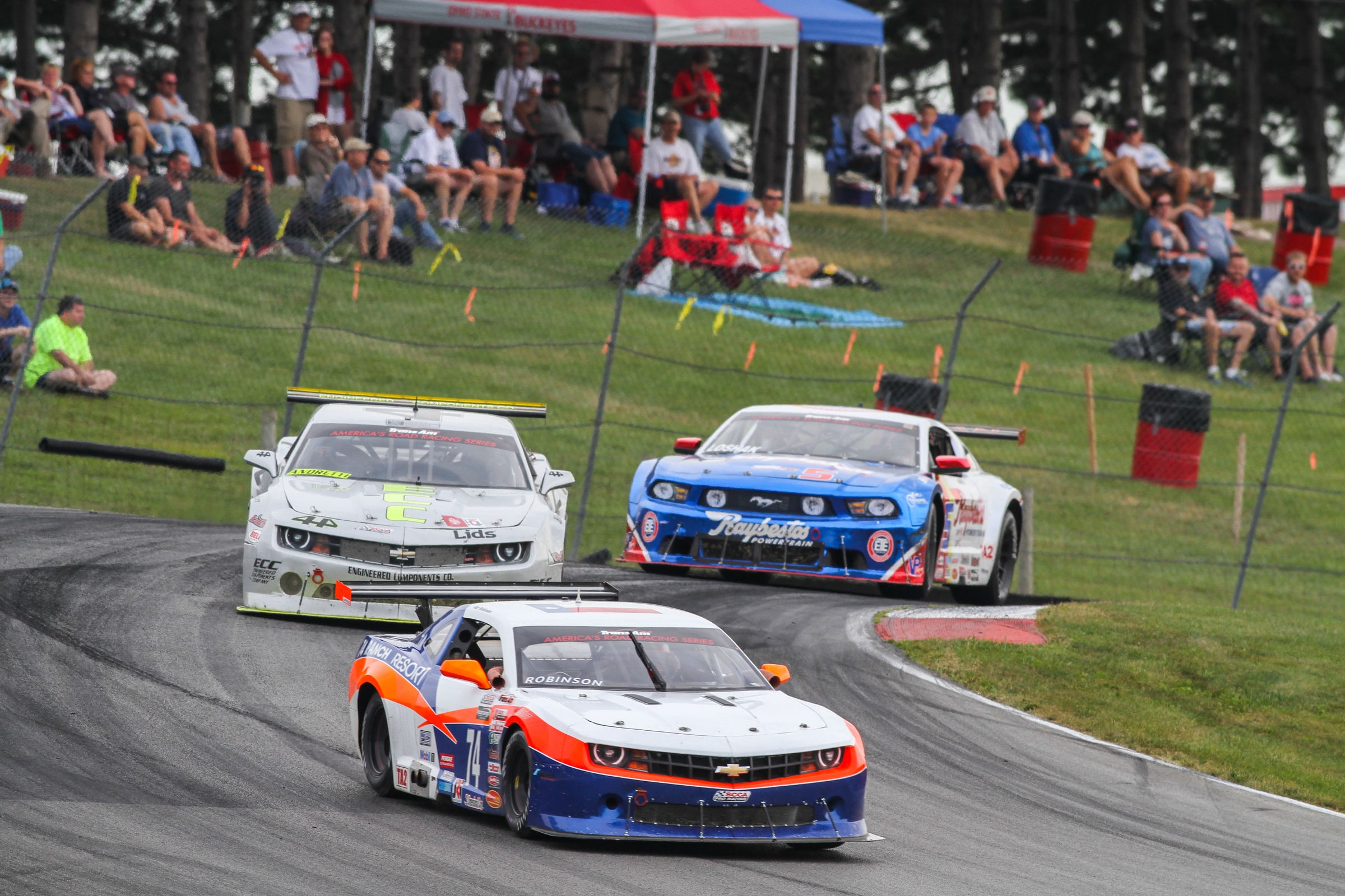 In TA2 the ongoing pony wars between the Ford Mustang, Chevrolet Camaro and Dodge Challenger will rage on, with defending TA2 Champion Gar Robinson, driver of the No. 74 74 Ranch Resort Chevrolet Camaro, ready to defend his title against a host of 35 other drivers—creating the largest TA2 field ever.